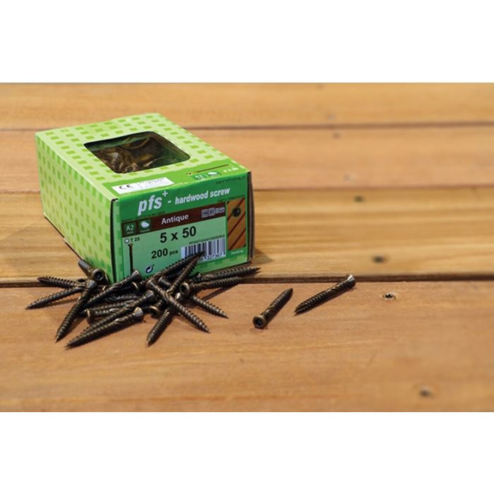 PGB PFS hardhoutschroef dubbele draad 5x50 A2-brons