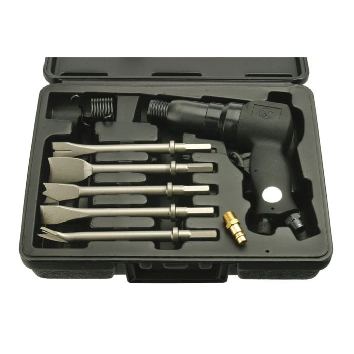 De RC 5120 is een compacte hakhamer waarvan de slagkracht is in te regelen middels de luchttoevoer. Deze wordt standaard geleverd met RC 70 borgveer en diverse 11 mm beitels met een 6 kant aansluiting. Alle beitels van Rodcraft in 11 mm zijn passend voor deze machine.