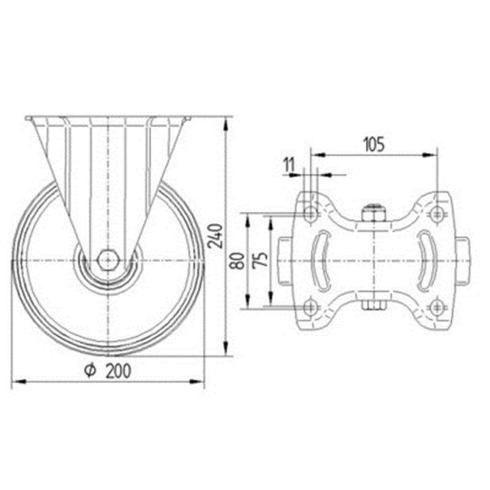 Tente Bokwiel met plaat, rubber band 200mm 205kg 3478-PVR-200-P63